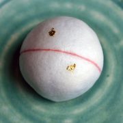 澄んだ水に泳ぐ魚をイメージして錦玉の中に大徳寺納豆を一粒沈めました。